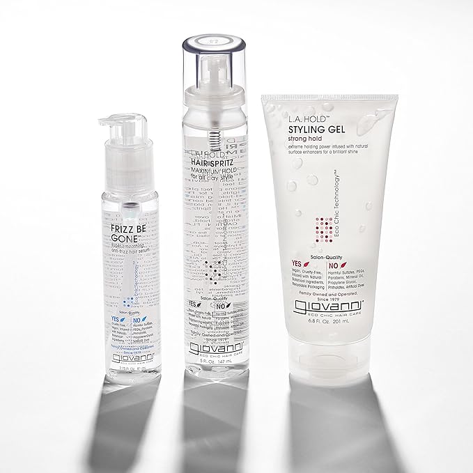 - FRIZZ FREE CARE - GIOVANNI ECO CHIC Frizz Be Gone Serum improves hair elasticity, silkens tresses, and defines style. This luxurious serum creates the perfect sealant to control frizz, add shine, and lock in hair style