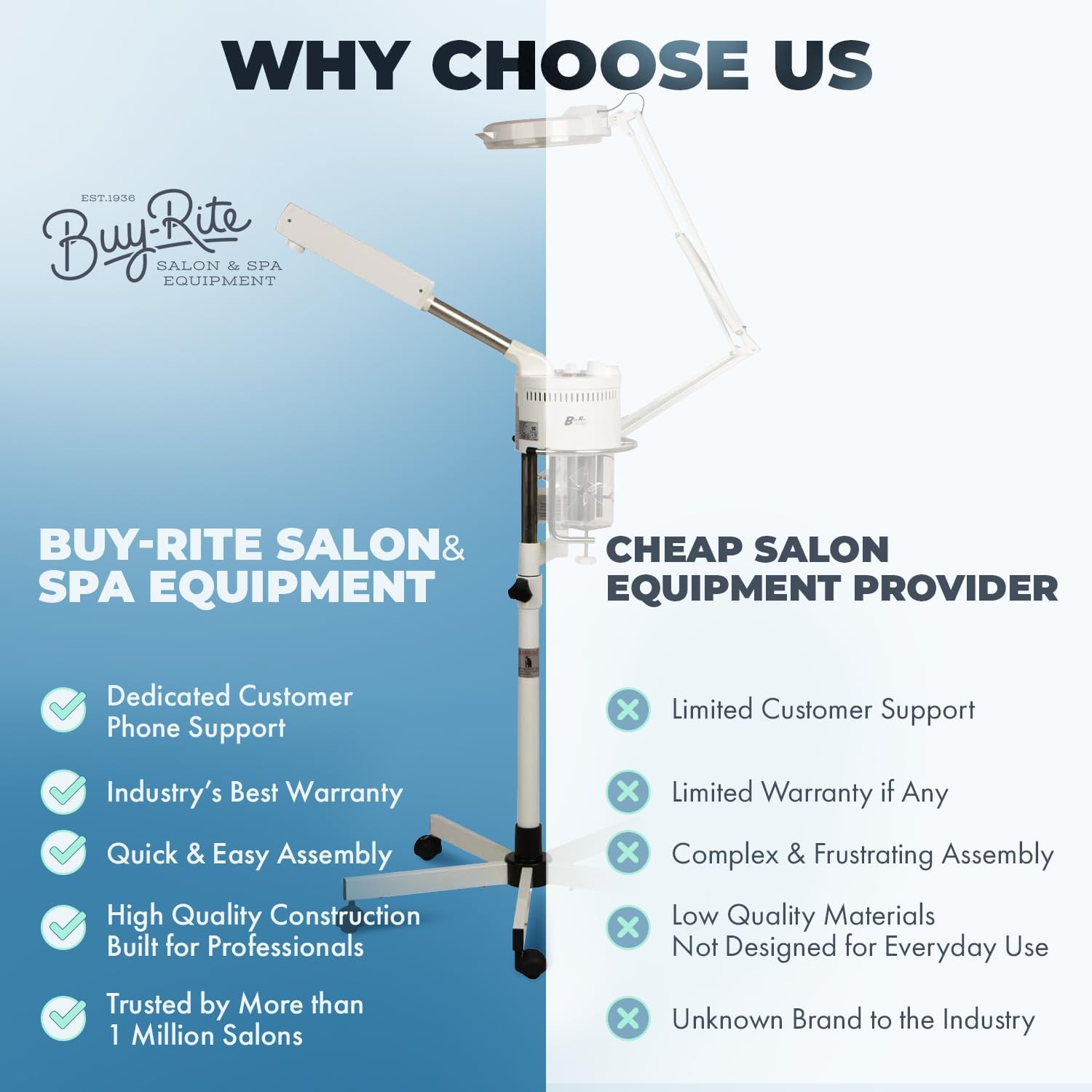 Buy-Rite 2-in-1 Marie Ozone Facial Steamer, 5 Diopter Magnifying Lamp, Fully Adjustable Height, 360' Swivel, Timer and Automatic Shut-Off, Large Star Base with Wheels, MEI-2001A