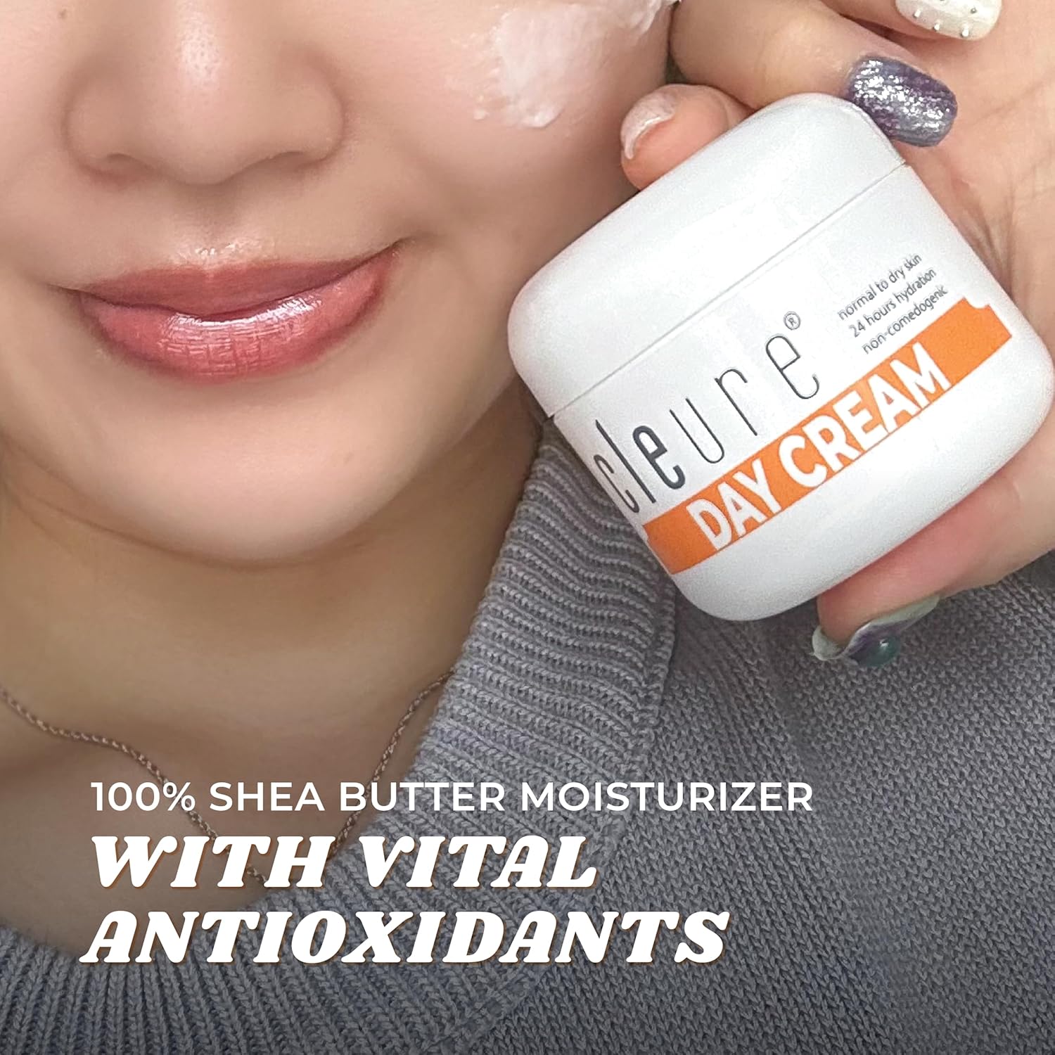 Cleure Anti-Aging Day Cream & Facial Moisturizer w/Pure Shea Butter for Sensitive Skin - Fragrance Free, Gluten, Salicylate and Paraben Free (2 oz, Pack of 1)