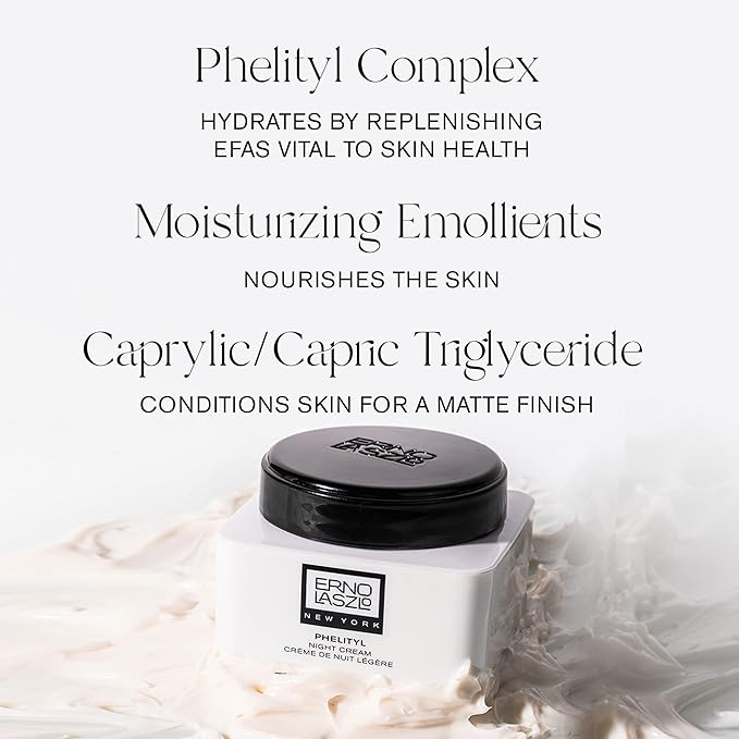 Erno Laszlo Phelityl Night Cream, Non-Greasy Night Moisturizer for Face and Neck, Re-Hydrate to a Youthful Skin Tone and Complexion Overnight, 1.7 Fl Oz