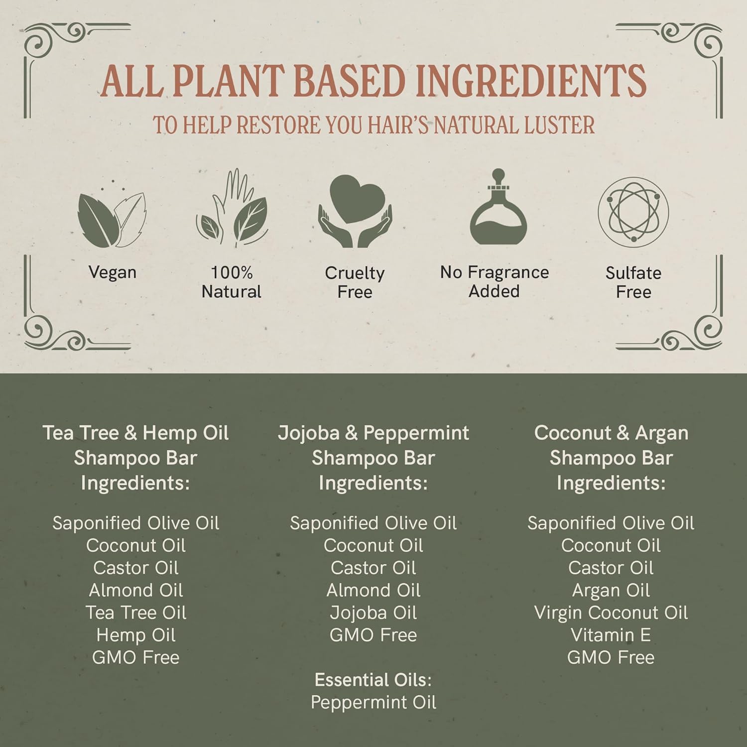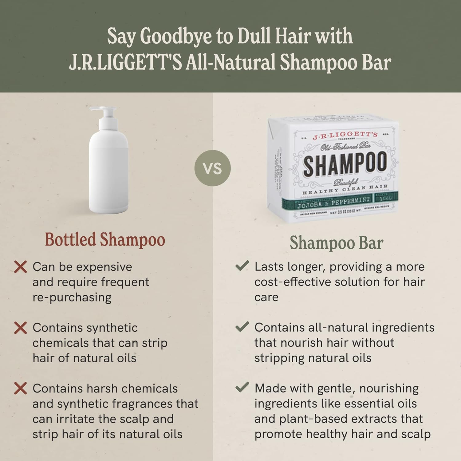 J·R·LIGGETT'S Shampoo Bar - Tea Tree, Jojoba & Peppermint, Coconut & Argan Oils - All Natural Solid Shampoo Bar, Sulfate-Free, Gmo-Free, Nourish Hair with Antioxidants and Vitamins, 3.5 Oz - 3 Pack
