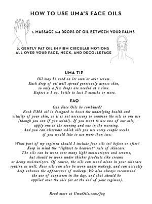 - WHAT IT IS - The UMA Absolute Anti-Aging Face Oil for Women is designed to help minimize the appearance of wrinkles, fine lines, and pigmentation.