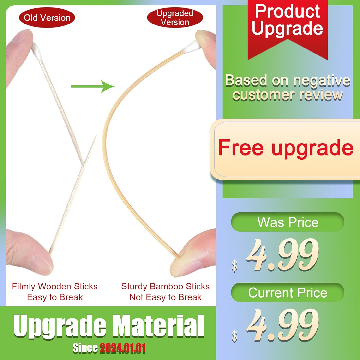 - Long Handle Cotton Swabs:High quality of wooden handle and Wooden handles offer aggressive cleaning.Cotton swabs designed with pure healthy cotton and durable cotton head thar does not easily unravel, is gentle to your skin and items surface.Wood handle is not easy to break, comfortable and safe for use.