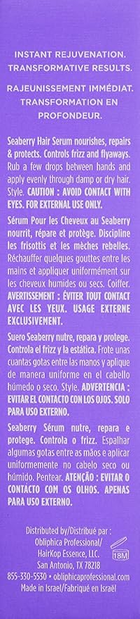 Obliphica Seaberry Leave in Hair Serum for Medium & Course Hair - Vitamins and Omegas for Frizz Free & Nourished Hair - Hair Serum for Dry Hair and Growth - 2.2 Fl Oz