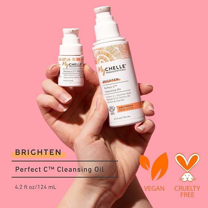 MyCHELLE Dermaceuticals Perfect C Cleansing Oil, 4.2 Fl Oz - Facial Cleanser with Vitamin C L-Ascorbic Acid, Baobab Oil & Tamanu Oil to Restore & Hydrate Your Skin