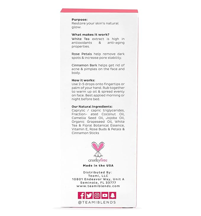 - Made with 100% plant extracts, this holistic hydrating formula will work to moisturize and plump your skin. Our face oils contain rose buds, jojoba oil, cinnamon and coconut oil for skin being perfect for all skin types including acne-prone skin, oily skin, dry skin and combination skin!