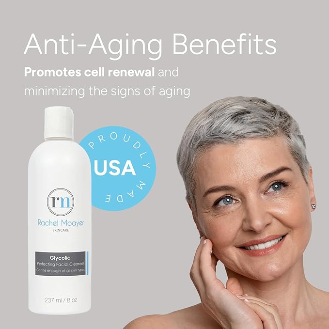 Rachel Moayer Glycolic Perfecting Facial Cleanser, Exfoliating Face Wash with 12% Glycolic Acid, Clears and Prevents Acne, for All Skin Types, Gentle Daily Facial Cleansing for Women & Men