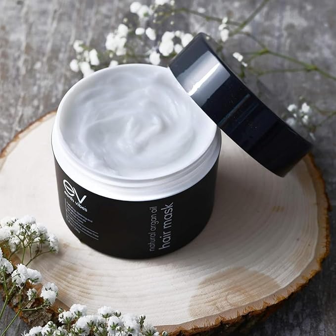 Earth Vibes Hydrating Argan Oil Hair Mask Conditioner - Deep Conditioning & Moisturizing - Hair Treatment For Dry Damaged Hair - Sulfate Free - Organic Jojoba Oil, Coconut Oil (8 Oz/226g)