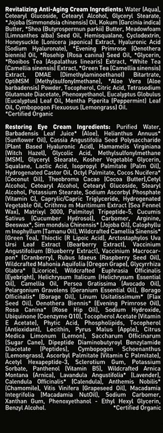 - Key Ingredients: Natural & Certified Organic ingredients, including aloe, DMAE, MSM, hyaluronic acid, activated charcoal, pumice, jojoba beads and green tea.