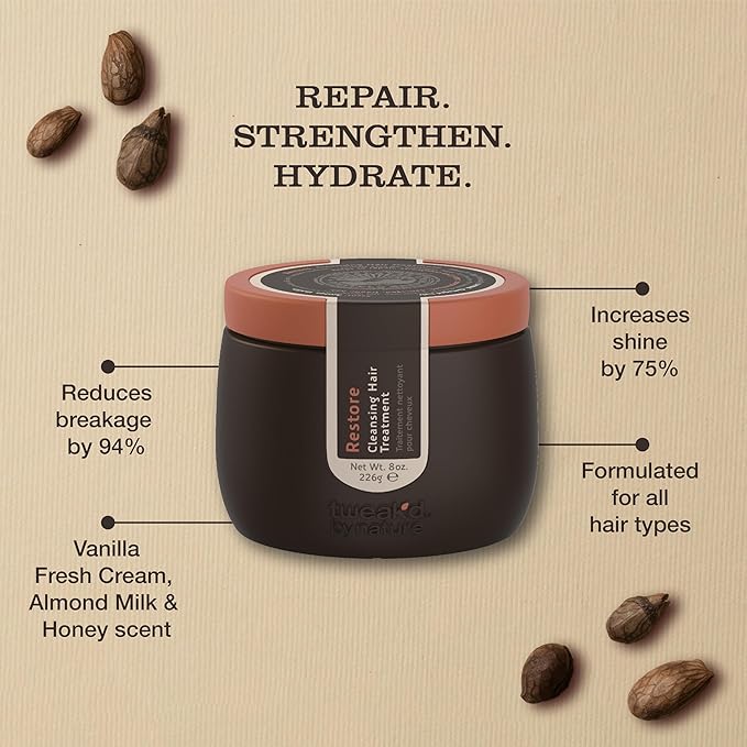 Tweak’d by Nature - Restore Cleansing Hair Treatment, Hair Mask for Damaged Hair, 5-in-1, Strengthens and Nourishes Dry Hair for Silky and Soft Feel, Cruelty Free (8 ounces)