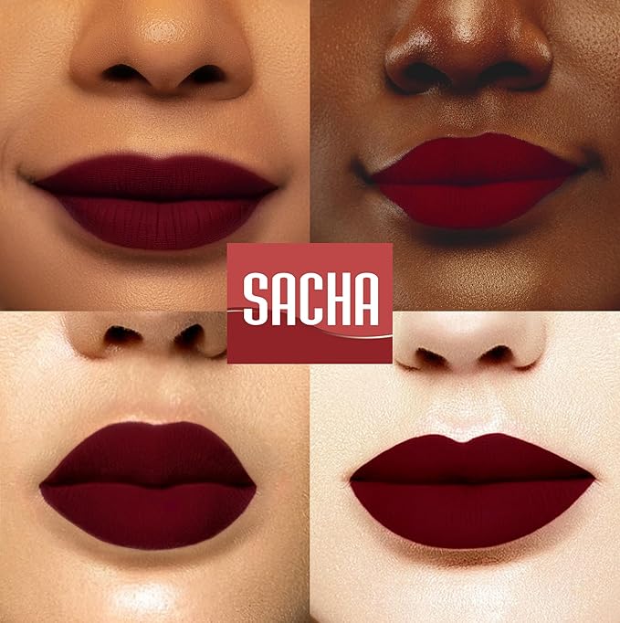 Sacha Cosmetics Intense Matte Lip Velvet Liquid Lipstick, Long-Lasting Velvet Matte Finish, 0.2 fl.oz Hang Over Red