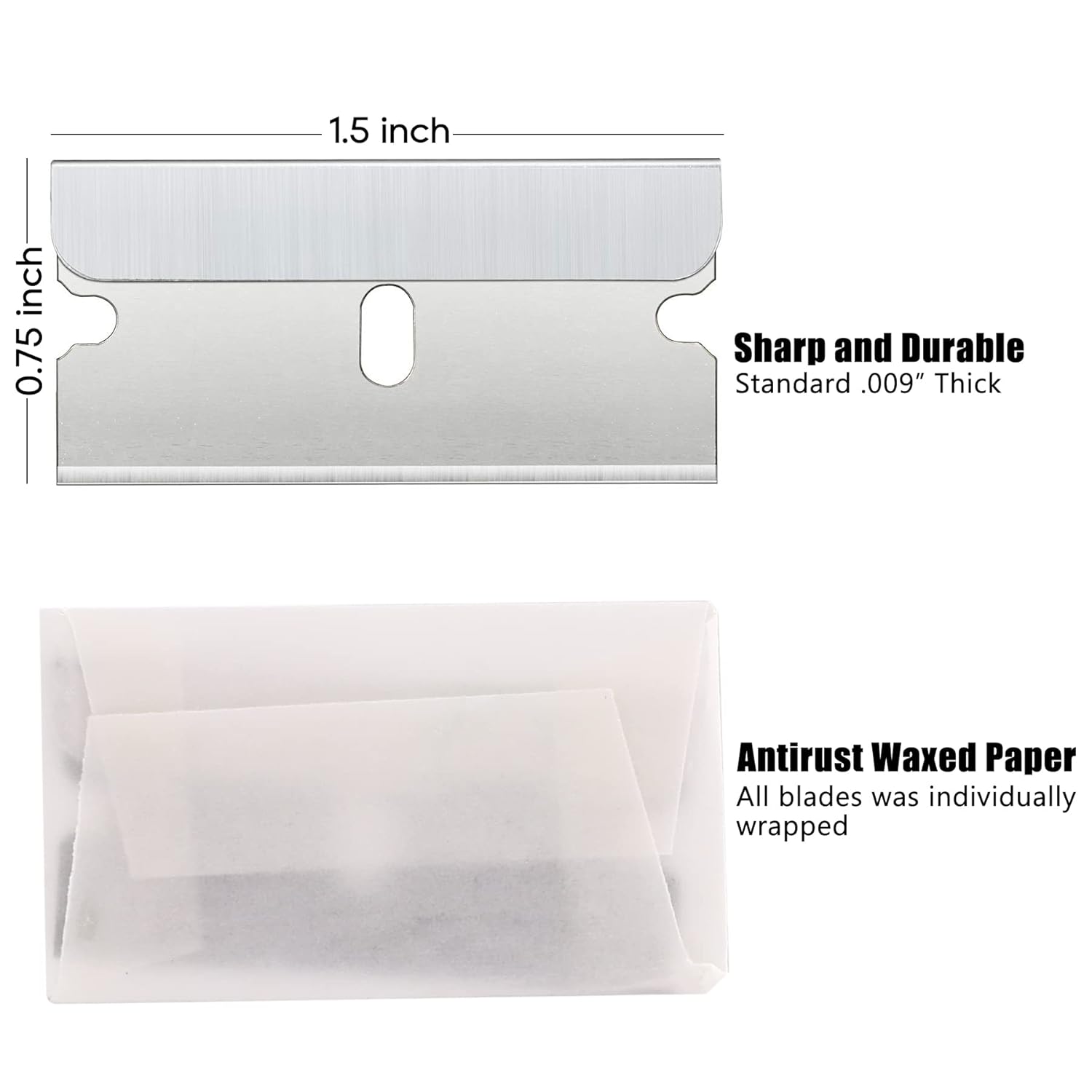 - Includes 200 total 1.5" x 0.75" thick steel single edge razor blades