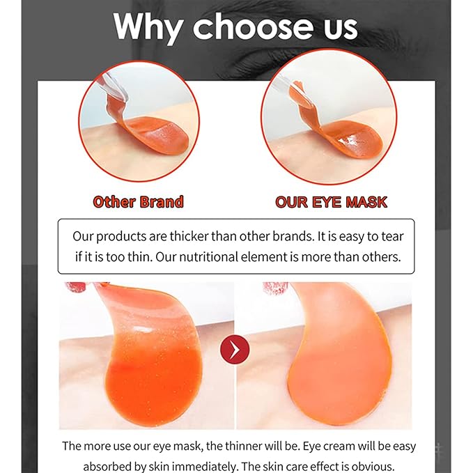 - 🍊Safe and Effective Ingredients🍊: Our vitamin c water-soluble collagen eye mask is a combination of a variety of natural organic ingredients, rich in collagen, extracted orange vitamin c, sodium hyaluronate and niacinamide, which is specially targeted at dark circles of the eyes to keep your skin hydrated.🧡🧡🧡TIPS: If you have sensitive skin, use it behind the ear.
