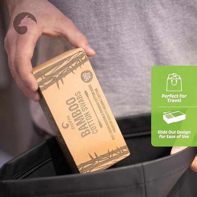 - 📦 ECOLOGICAL PACKAGING: Our packaging is 100% biodegradable & recyclable, and even uses a soy-based dye. It has a sturdy slide out design allowing you to easily store any unused swabs & makes packing for travel ideal.