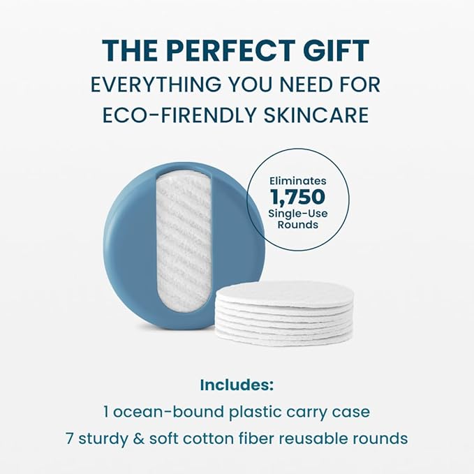 LastRound Reusable Makeup Remover Pads - 7 Washable Eco-Friendly Reusable Cotton Rounds for Face - Sustainable & Soft Cotton Face Pads for Facial Cleansing & Eye Makeup Removal - Travel Storage Case