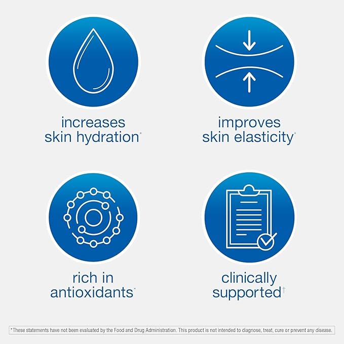 - Daily Skin Hydration Aid: This health supplement offers a daily moisture support for your skin with a blend of hyaluronic acid and ceramides*