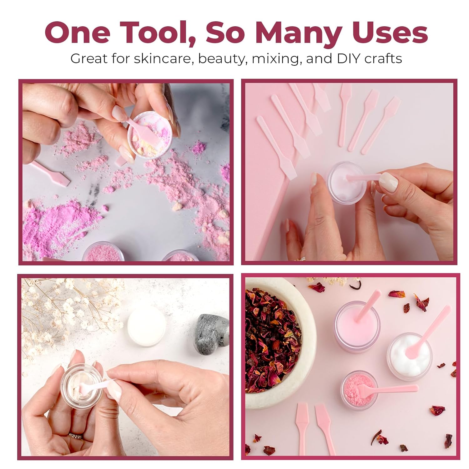 - DIY Skincare Creations: Our disposable makeup spatulas are the perfect skincare tools for mixing your homemade skincare concoctions, including face masks, creams, and more. Plus, use these disposable makeup applicators for sampling or applying products