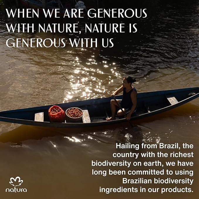 - Eco-Friendly & Empowering: Natura’s Ekos Tukumã line supports Amazon conservation by transforming unproductive land into orchards, helping restore degraded areas. By using this product, you directly contribute to the livelihood of 702 families who harvest the Tukumã fruit, empowering women with income and autonomy.