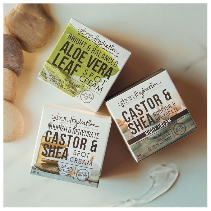 - ABOUT THE PRODUCT: Urban Hydration Nourish and Rehydrate Castor and Shea Night Cream is a gentle, all natural product for all skin types. This night cream will help leave your skin bright and balanced by helping acne, fading dark spots, and smoothing skin overnight, so your skin feels as refreshed as you in the morning! Safe for nightly use. Contains (1) 2 Fl Ounce Jar of Night Cream