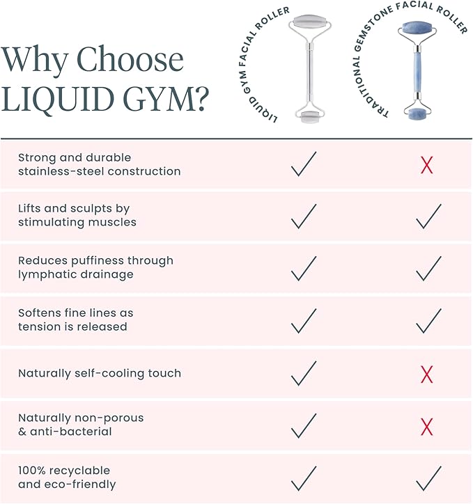 - π¦π§ππ π¨πππ§π π π¨π¦ππππ¦ ππ‘π ππ’π‘π§π’π¨π₯ π¬π’π¨? π¦πππ‘ - The LIQUID GYM Roller also helps to increase blood circulation, which can give your skin a fresh and bright appearance. By stimulating the muscles in your face, our face roller for wrinkles and lifting can help to firm and contour your skin. This face sculpting tool is an excellent choice for those who want to achieve a more youthful and lifted appearance.