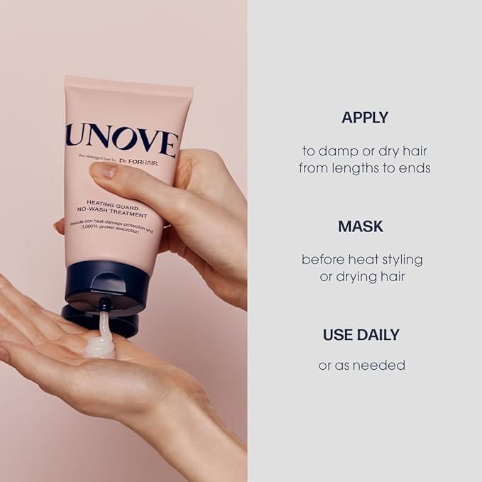 - EASY TO USE – To use this product, apply a small amount on towel-dried wet hair, applying especially on the damaged parts of hair. Gently apply onto hair thoroughly to cover all strands, and then dry your hair. Use regularly as needed to treat damaged hair. Using the right hair products is essential to ensuring your hair and scalp stays beautiful and healthy, and what better way to begin your hair journey than with this protective UNOVE Heating Guard No-Wash Treatment for all hair types!