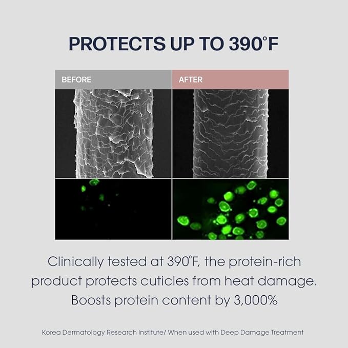 - BEST HAIR SOLUTION FOR YOU – UNOVE Heating Guard No-Wash Treatment is the solution for damaged, split, dry, rough hair prone to breakage and frizziness. Best used for as a leave-in treatment. This treatment provides iron heat damage protection up to 392°F/200°C and 3000% protein absorption. By providing your hair with the essential deep care it deserves but doesn’t always get, this treatment will effectively enhance your hair health and growth to become healthier and full of life.