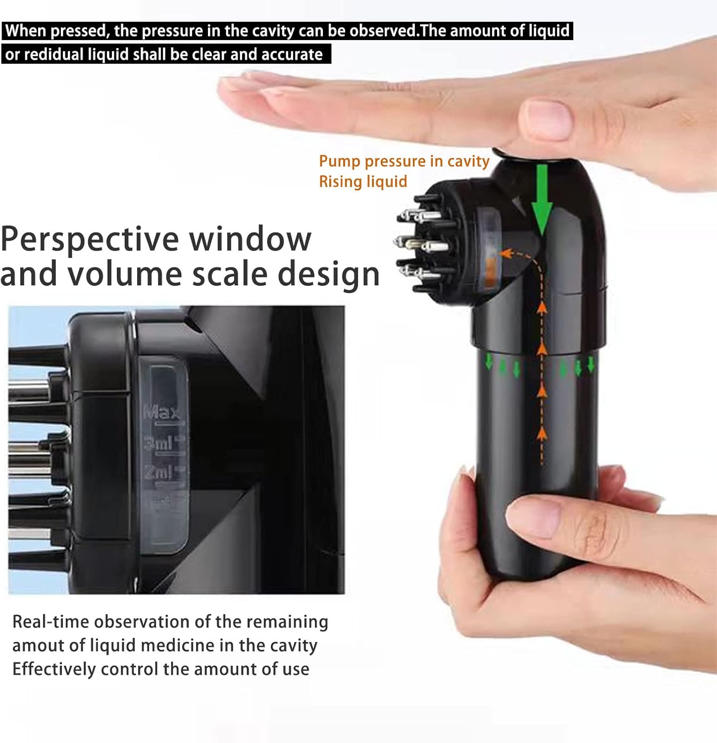 - Flexible Handheld Design: The 70ML large-capacity liquid storage bottle can act as a handle, making it more comfortable to hold and easier to operate. Compatible with some minoxidil bottles. And the liquid tank supports detachable cleaning.