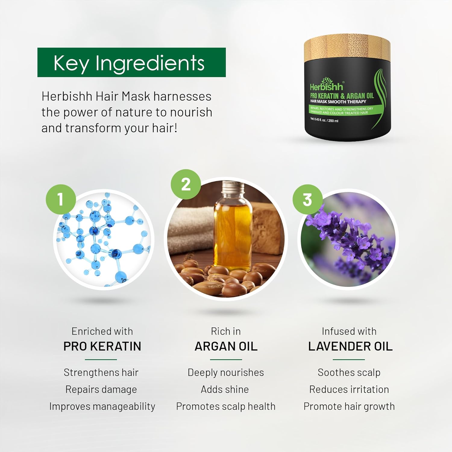 - PROFESSIONAL TREATMENT FOR DRY DAMAGED & COLOR TREATED HAIR – Give your lush locks the care they deserve with Herbishh keratin argan oil hair mask that helps repair and condition your hair from damages caused by years of color treatment and straightening, restore the softness, bounce, and shine, and nourish the hair deeply to prevent it from drying out, and give your hair lasting protection.