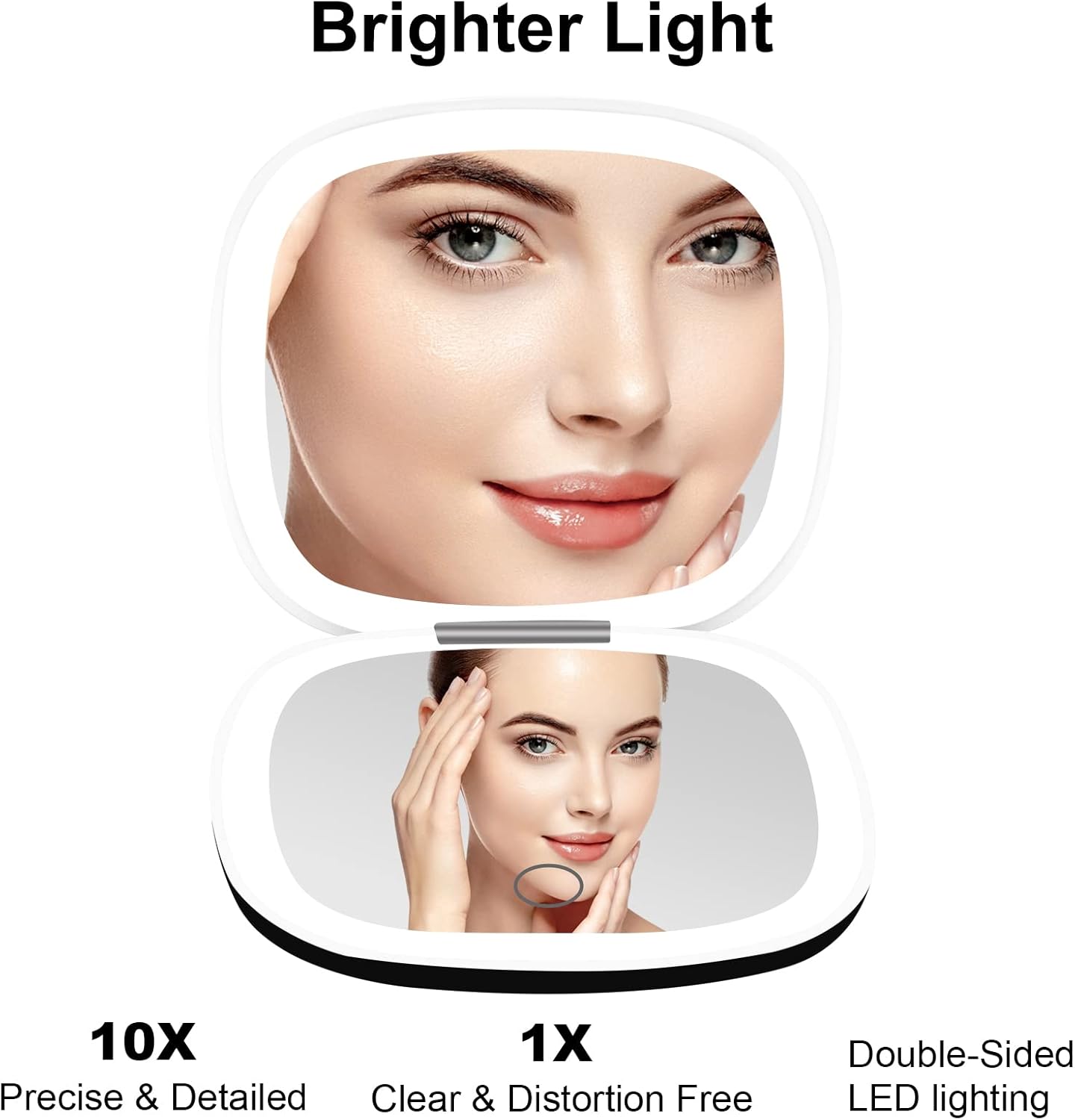 deweisn Compact Mirror, Lighted Travel Makeup Mirror with 1X/10X Magnifying Double Sided Dimmable Portable Pocket Mirror for Handbag, USB Charging(Black)