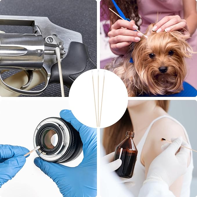 - Extra Long Swabs for Precision: The 6-inch long cotton swabs reach tight spaces, making them perfect for cleaning cameras, gun parts, and pet ears; also great for delicate tasks and hard-to-reach areas