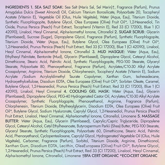 - 5 Easy Steps to Perfect Pedicures. Our Pedi in a Box Glimmer is easy to use, with 5 steps that are simple to follow. The set includes a salt soak, sugar scrub, mud masque, cooling gel mask and massage butter. This is the perfect way to get professional results from the comfort of your own home!