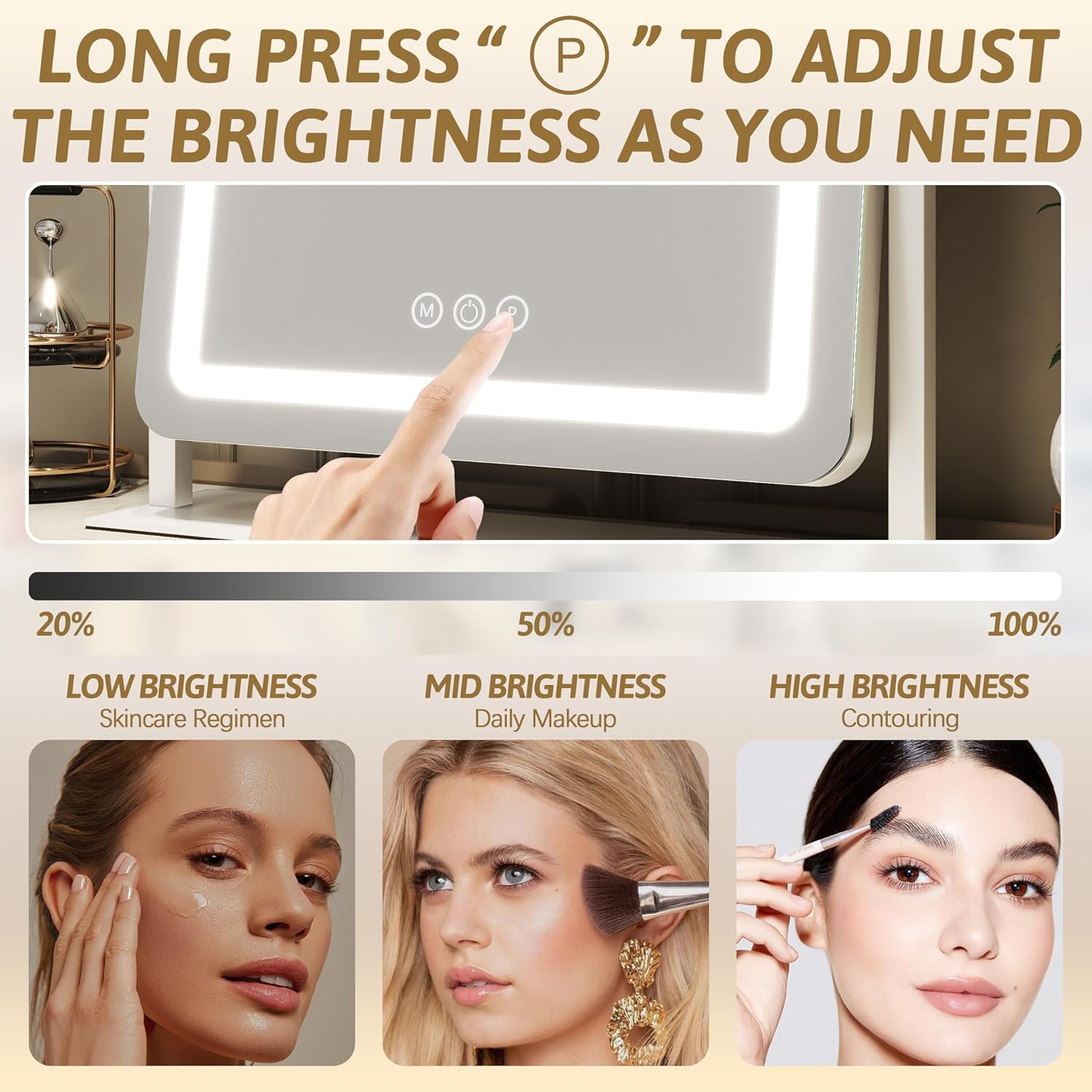 - 【Smart Dimming】 Get the perfect lighting for your makeup with our smart dimming feature. Choose from warm, day, or cool light and adjust the brightness from dim to bright with just a button. Our LED lights also come with eye protection to keep your eyes safe even with the increased light.