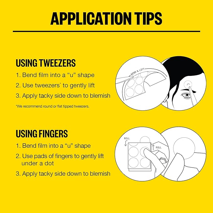 - Suggested Usage: -After cleansing, apply a dot, tacky side down, directly on your blemish. -Follow with skincare and/or makeup, such as an oil- or water-based foundation. -For best results, wear for at least six hours. -For peskier pimples, use with Salicylic Acid Acne Healing Dots (sold separately) at night. -If you're experiencing any areas of excessive dryness or open skin, or if you went a little heavy handed with peels, chemical exfoliation, or actives, give your skin a little resting time before using Peace Out dots or patches.