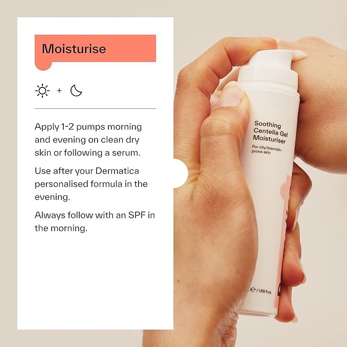 - Instructions: Apply 1-2 pumps in the morning and evening (after your Dermatica Azelaic Acid Cream and/or Hyaluronic Serum if you use them as part of your routine). Depending on the weather or how your skin feels, you can apply more than one layer.