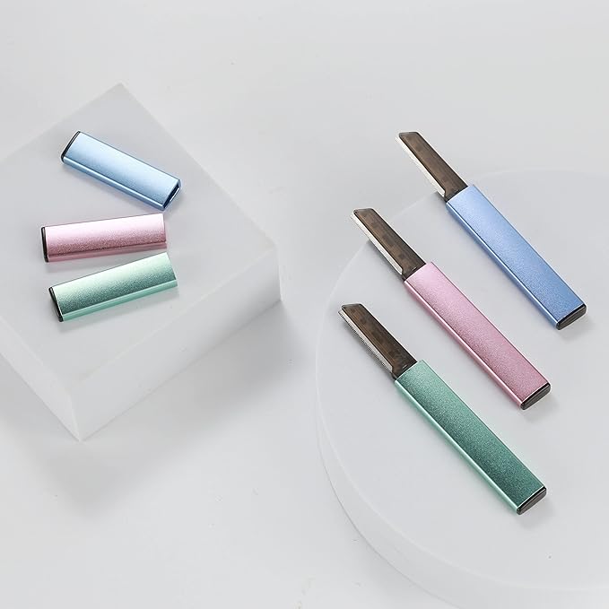 • ❤High-Quality Handle and Blades - Lightweight Aluminum Alloy Handle with superb metallic texture sandblasted anodized CNC precision machining Golden ratio design. Japanese blade sharp durable and long-lasting safety net safety against skin damage.