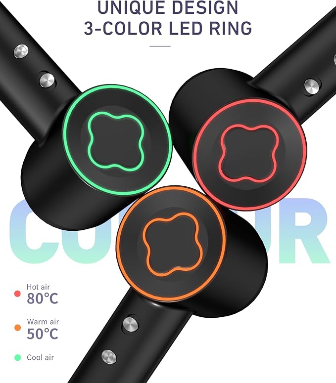 - Intelligent Temperature Control: Cosy Companions professional hairdryer measures the air temperature over 100 times per second and regulates the heat through a high performance chip control system. Avoid overheating damage to your hair and protect your hair. Our hair dryer has 3 different LED lights built in, and you can turn the LEDs into different colors by switching the heat button. Red means hot air, orange is warm air and green is cool air. Enjoy blow-drying your hair in comfort