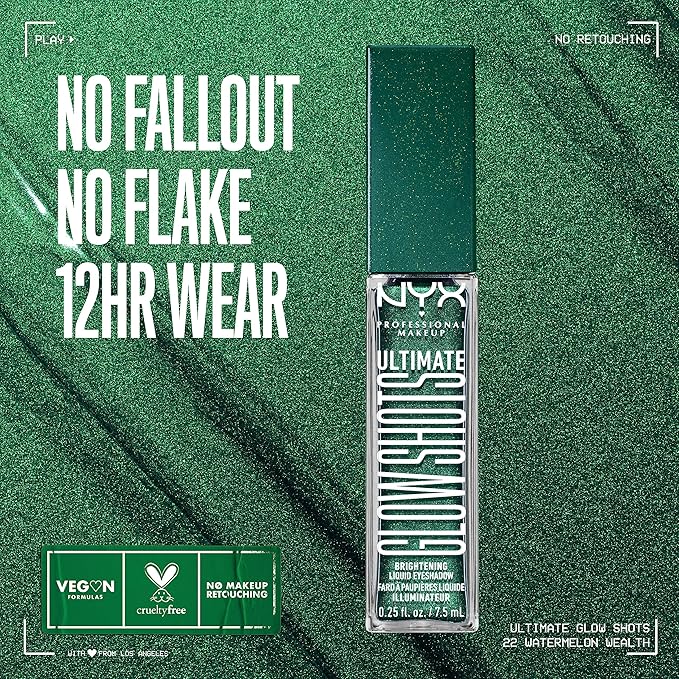 - Ultimate Shimmer and Glow: Brightening liquid eye color in one shot. Our new innovative liquid eyeshadow is a lightweight, buildable make up formula with no flaking, no fallout, no glitter only long-lasting shimmer
