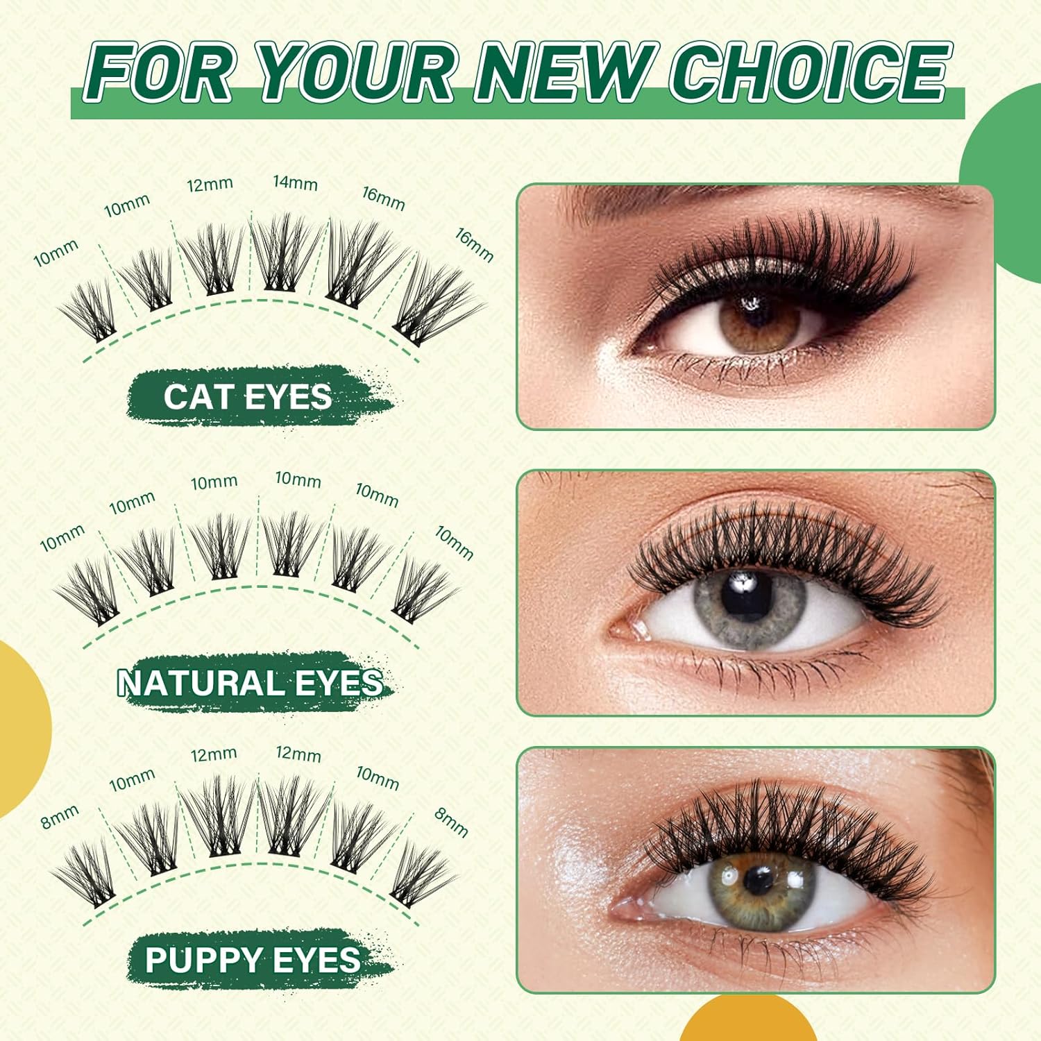 - 【144pcs High Quality Cluster Lashes】The simulated eyelash material is more realistic and will not feel plastic, comfortable and non-irritating on the eyes, allowing you to easily maintain a perfect makeup all day long.