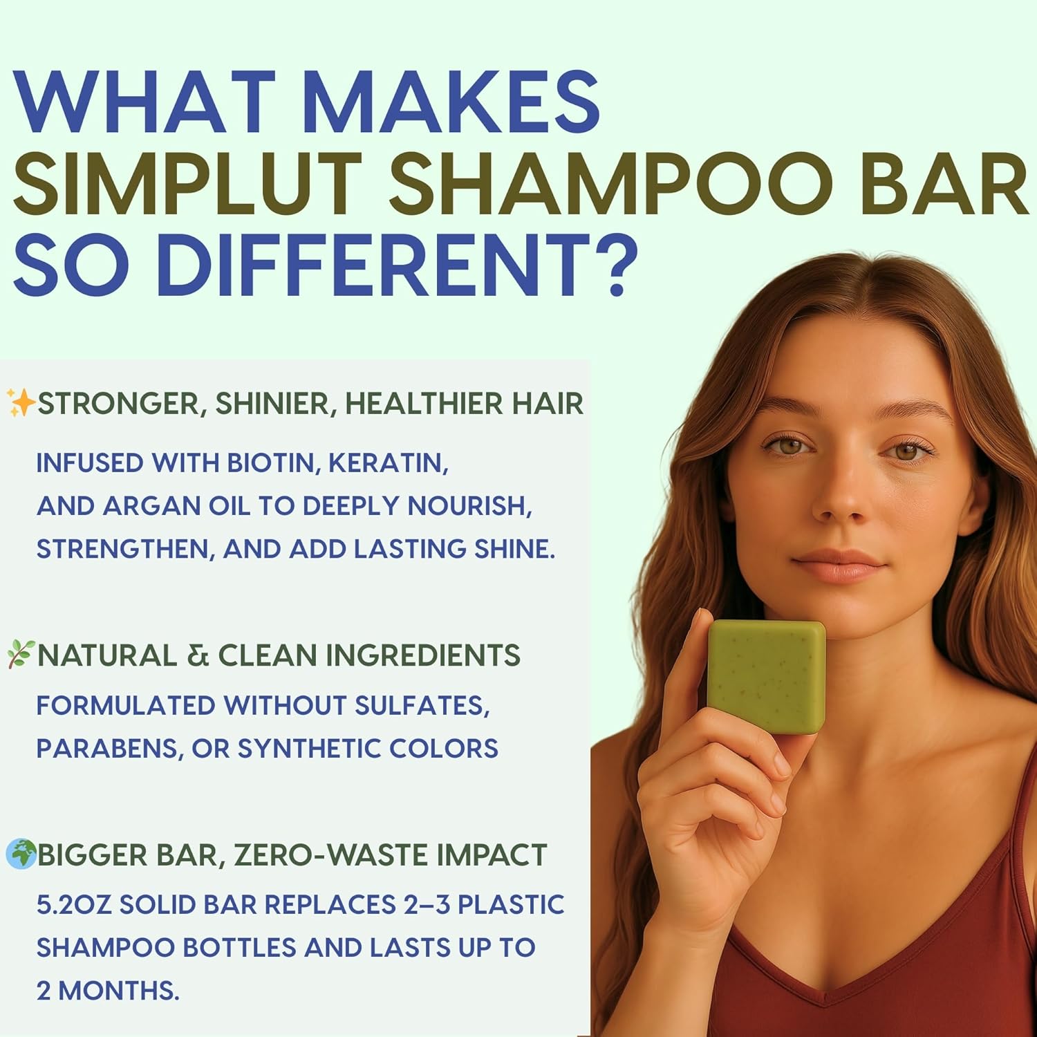 - UNIQUE ADVANCED FORMULA – BIOTIN, KERATIN & NIACINAMIDE : Unlike typical shampoo bars, SIMPLUT uniquely combines Biotin, Keratin, nourishing Argan Oil, and scalp-friendly Niacinamide to visibly strengthen hair follicles, enhance shine, and reduce thinning. Our carefully selected ingredients deliver noticeable results for stronger, healthier-looking hair.
