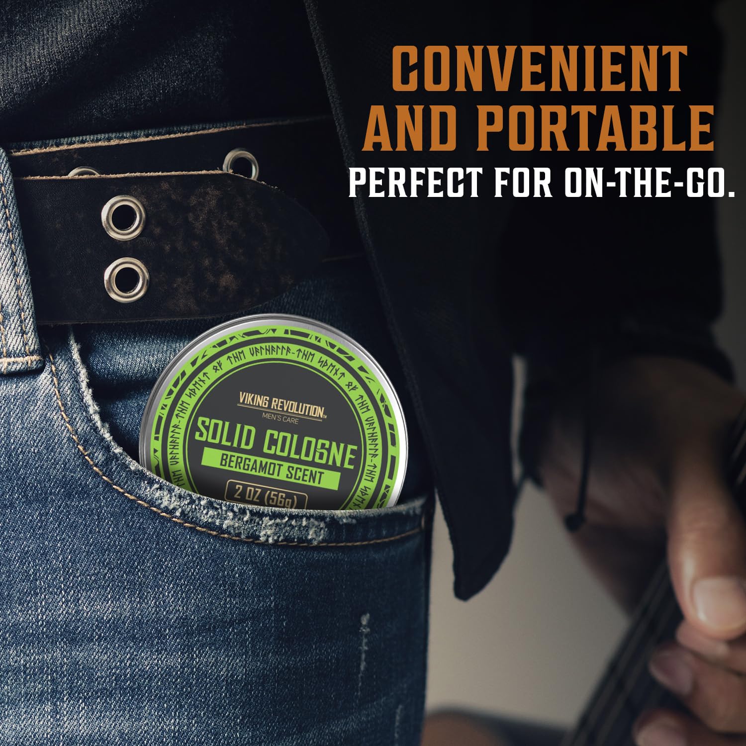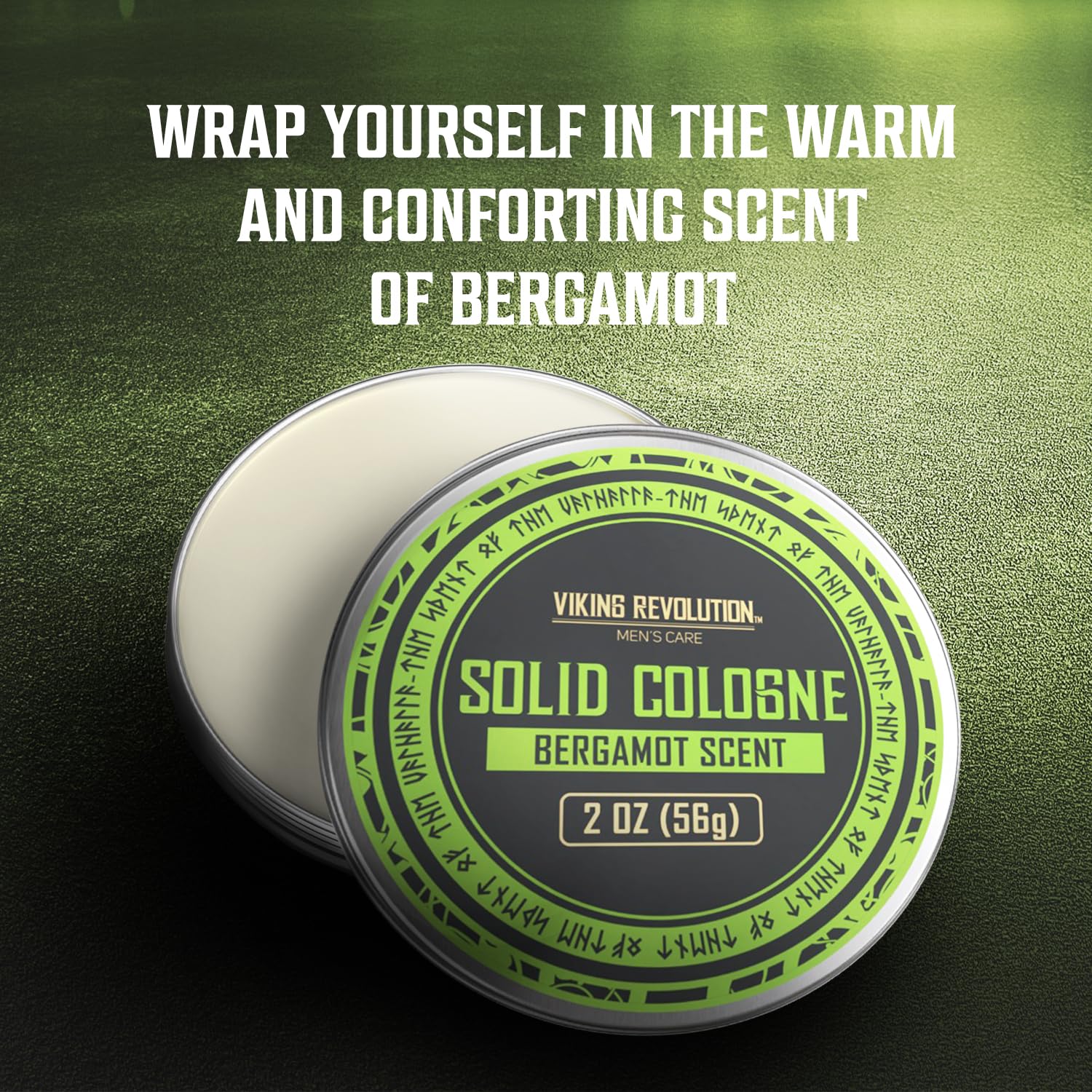 Viking Revolution Bergamot Solid Cologne for Men - 2 Oz Balm Cologne Travel Wax (1 pack, Bergamot)