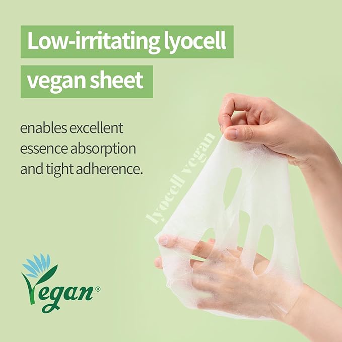 - 100% VEGAN 'LYOCELL VEGAN SHEET': Eco-friendly vegan lyocell fabric delivers active ingredients to the skin with excellent absorption and adhesiveness.