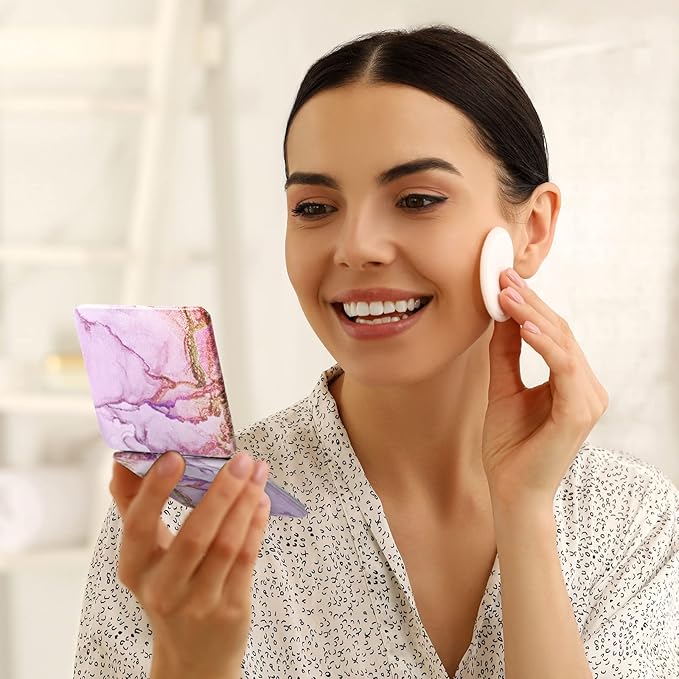 - Reliable Material: the folding compact mirror for girls is mainly made of quality glass, and the external embossed marble pattern is made of PU; The mirror surface is clear and not easy to fog, not easy to wear or rust, and can be served for a long time