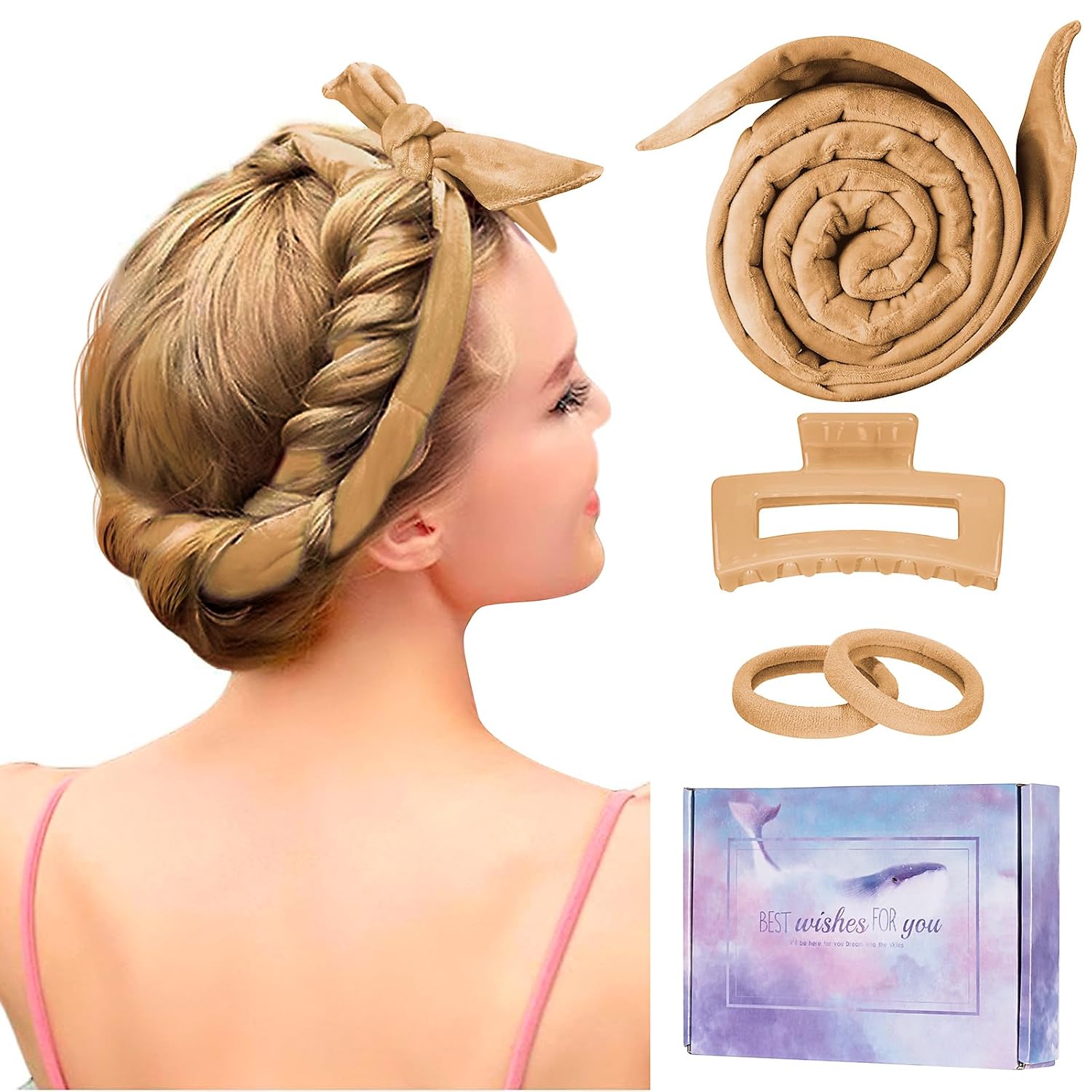 Heatless 60" Extra Long Soft Hair Curlers to Sleep In, No Heat Curling Headband Hair Rollers (Khaki)
