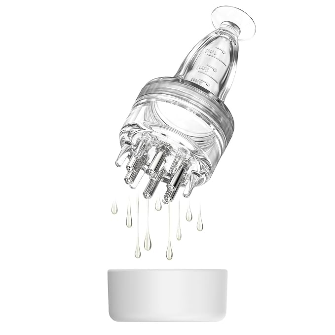 - 【Easy to Use 】 After adding liquid, make the ball teeth fit against the scalp and slide back and forth. The medicine will naturally and slowly flow out. If you want to accelerate the liquid outflow rate, simply apply slight pressure on the soft silicone cover with your thumb to double the liquid output.