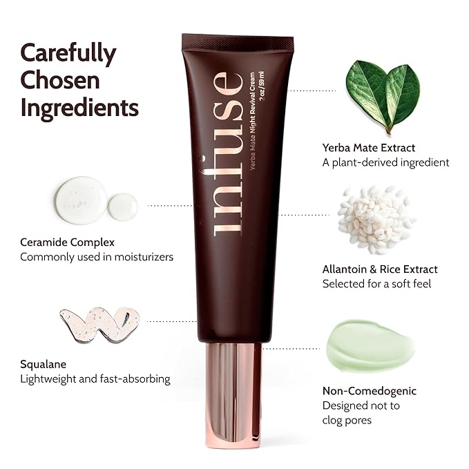 - OVERNIGHT SKIN RENEWAL FOR MATURE SKIN: Wake up to visibly revitalized, smoother skin. This luxurious Yerba Mate Night Revival Cream works while you sleep to deeply nourish, repair, and restore your complexion for a youthful, radiant glow by morning. Specifically formulated for mature skin care.