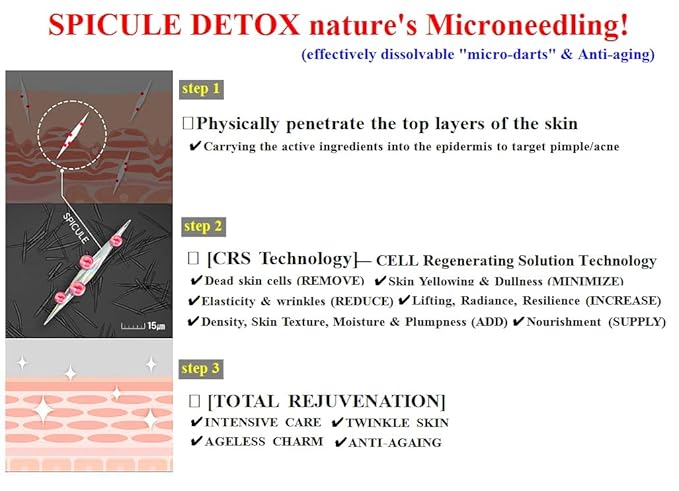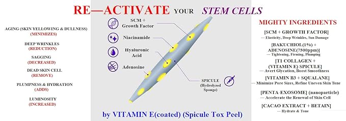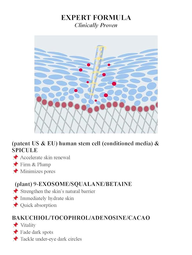 - [HERO INGREDIENTS] Active SPICULE (3,000,000 shot): Gently exfoliates while hydrating and firming the skin. Bakuchiol + Adenosine: Enhances skin tone and texture, boosting firmness and elasticity. Volufiline + Exosomes: Deliver deep hydration and promote skin regeneration Vitamin E: Fights free radicals, reduces dullness, and minimizes blemishes. Vitamin B3 (Niacinamide): Breaks up discoloration for a more even skin tone.