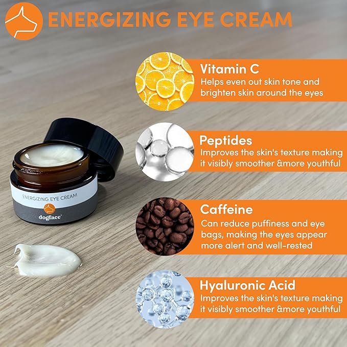 - EYE CREAM is a 5-in-1 Energizing Eye Cream. The Energizing Eye Cream contains caffeine, vitamin C, peptides, and hyaluronic acid to make the area under the eyes look smoother, fresher and more awake.