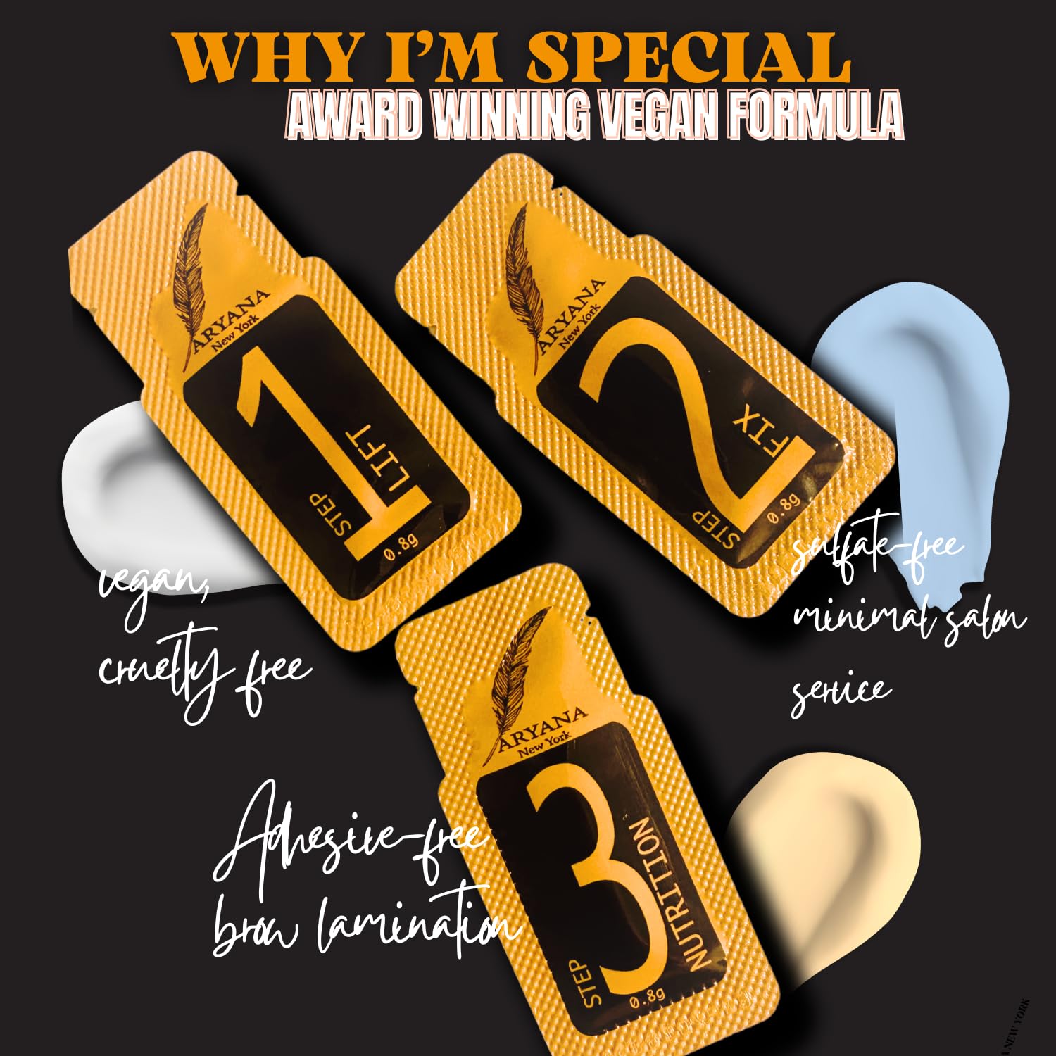 - ARYANA New York Lash Lift and Eyebrow Lamination Kit 2-in-1: One Solution for MEGA Lashes and Feathered Lifted Eyebrow.Transform your lashes and eyebrows into stunning works of art with our all-in-one kit! Achieve professional salon results from the comfort of your home.