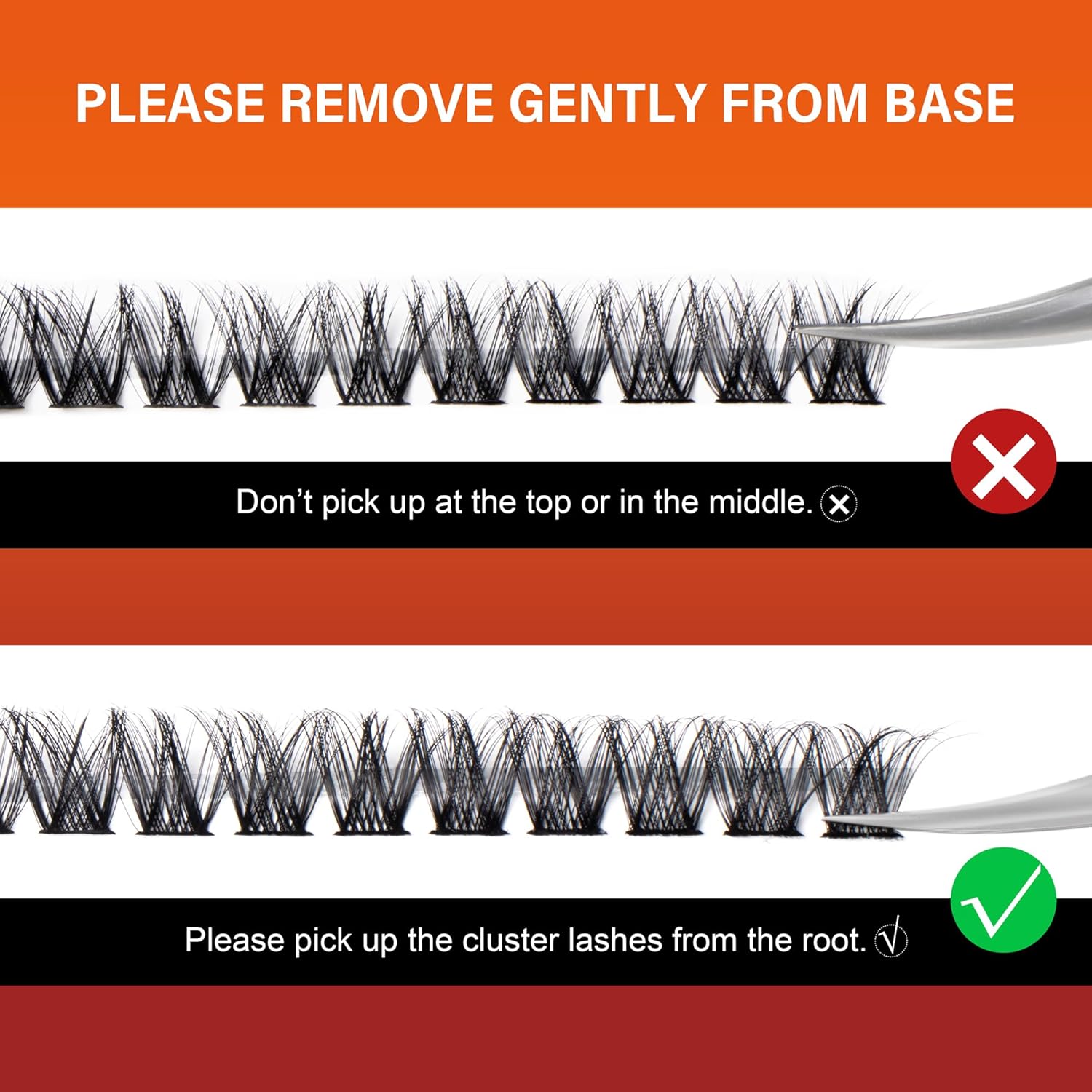 - 𝗘𝗮𝘀𝘆 𝘁𝗼 W𝗲𝗮𝗿 L𝗮𝘀𝗵𝗲𝘀 C𝗹𝘂𝘀𝘁𝗲𝗿 Apply a thin layer of eyelash adhesive to the root of natural eyelashes, gently place the eyelash cluster under the bottom of natural lashes using eyelash adhesive, and then apply a thin layer of eyelash sealant to fix the lash cluster in place and eliminate any residue
