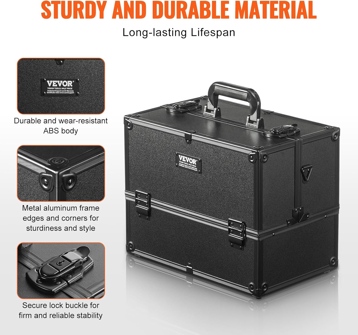 VEVOR Makeup Train Case Professional Makeup Storage Organizer Box Make Up Carrier for Women and Girls